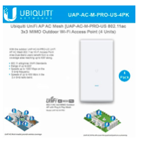 UniFi AP AC Mesh UAP-AC-M-PRO-US 802.11ac 3x3 MIMO Outdoor Wi-Fi AP (4 Units) The outdoorÿUAP-AC-M-PRO-US UniFi AC Mesh Wide-Area Dual-Band Access Point users benefit from a wide coverage area reaching up to 600' along with enhanced data transfer rates of up to 1300 Mbps on the 5 GHz frequency. These enhanced data rates and coverage capabilities are supported by a 3x3 MIMO internal antenna configuration supporting multiple data paths for a more efficient end user network connection.